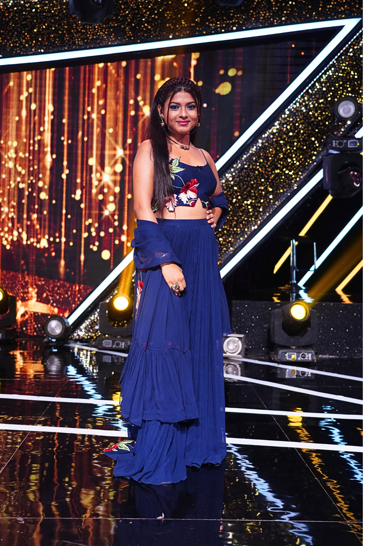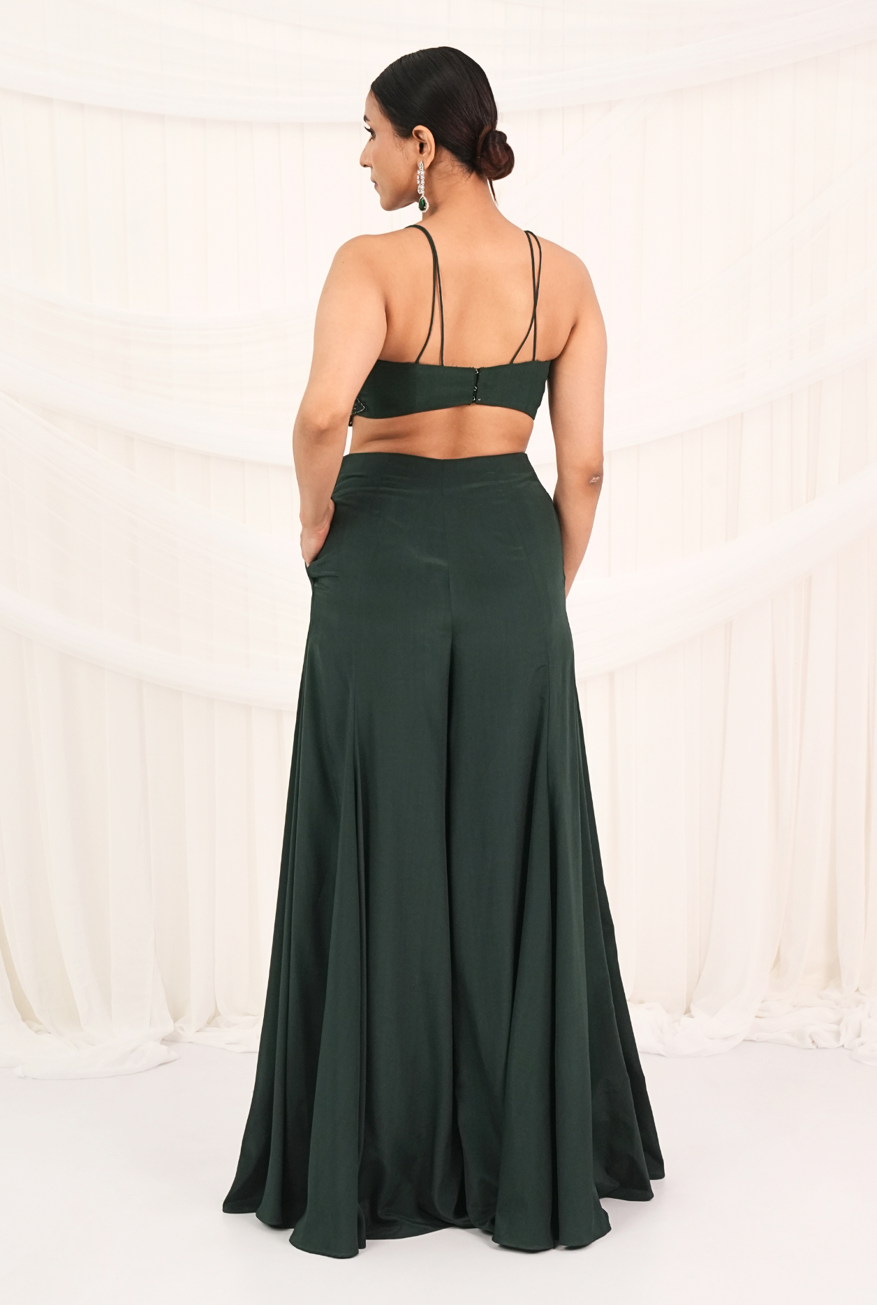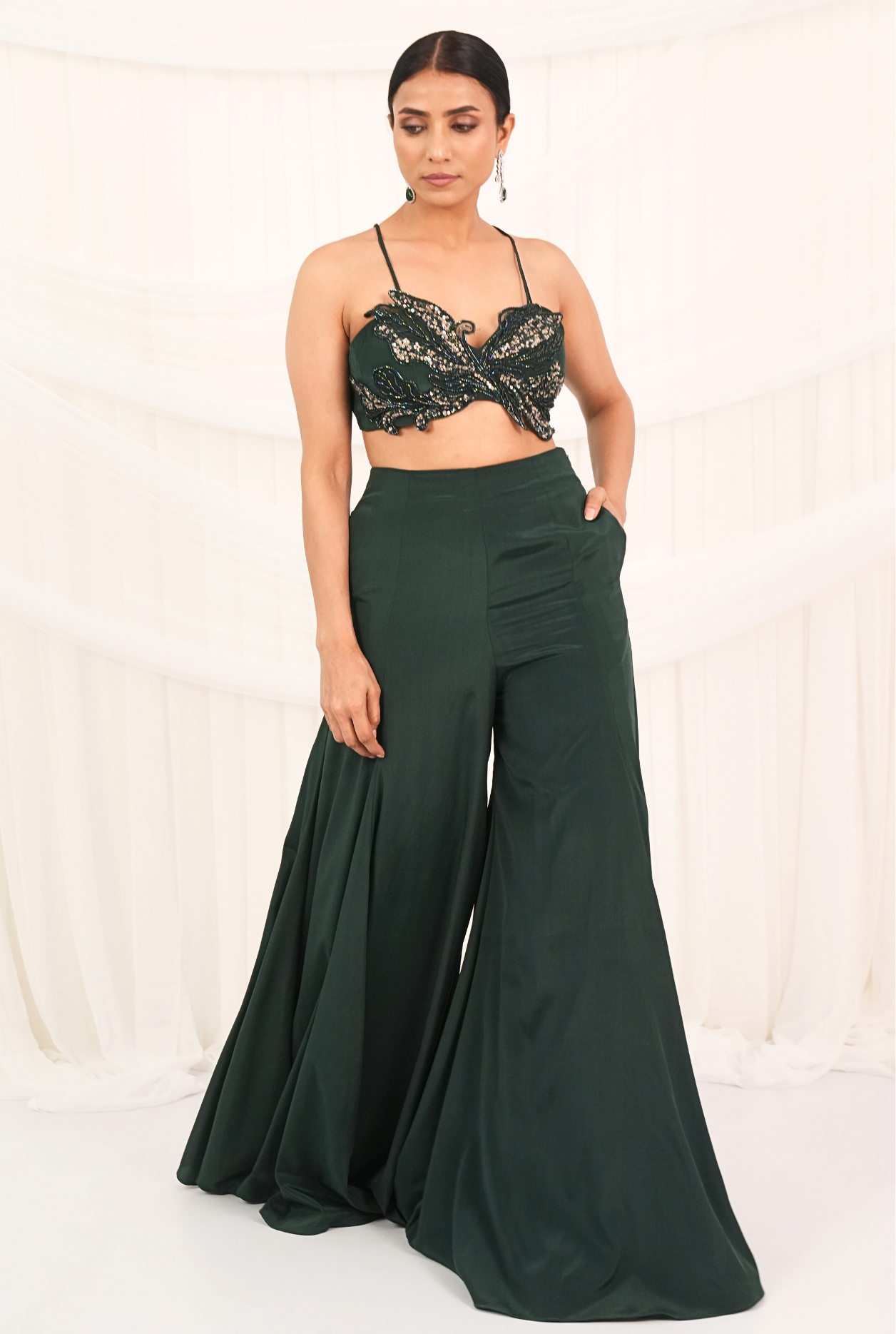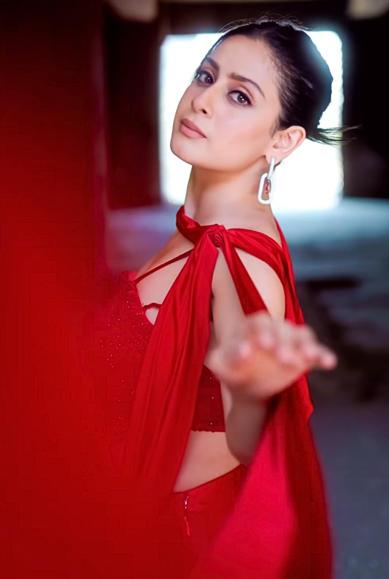 The craftsmanship is unparalleled: a rich tapestry of intricate patchwork, fine dori, and elegant cutwork, brought to life by the brilliant sparkle of hand-embroidered red crystals, cutdana, and sequins.