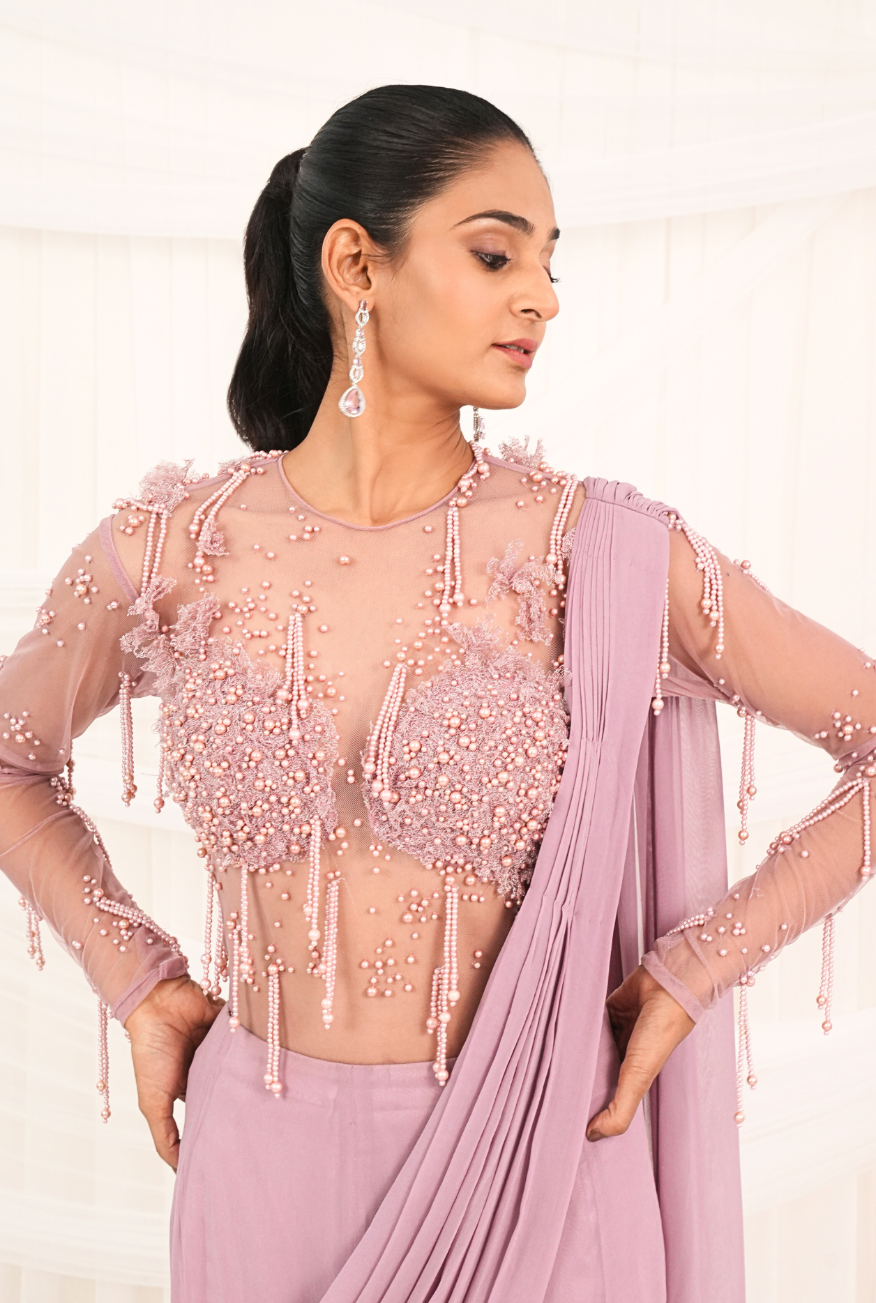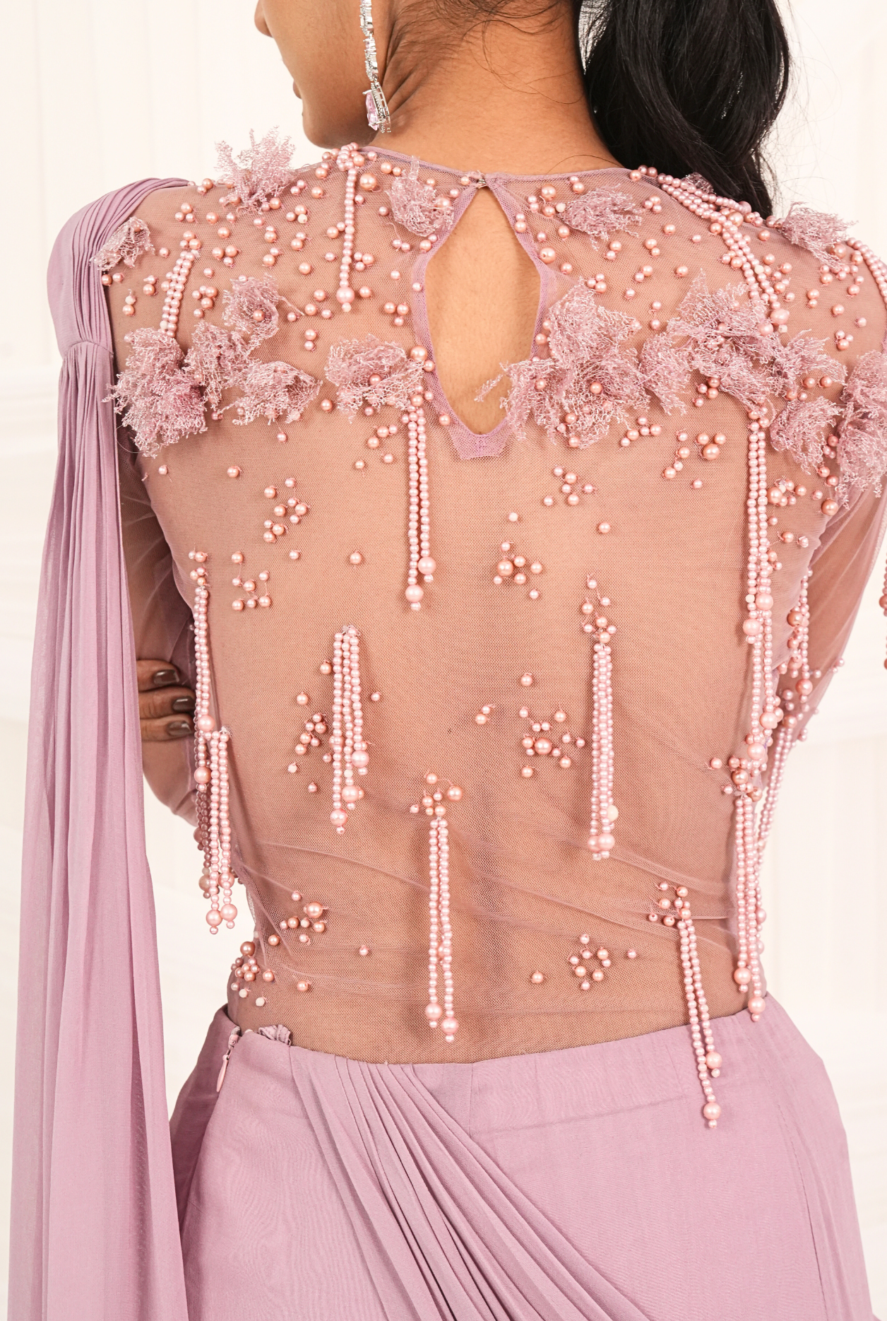 Pink Twilight | Cashmere Rose Draped Saree with bodysuit