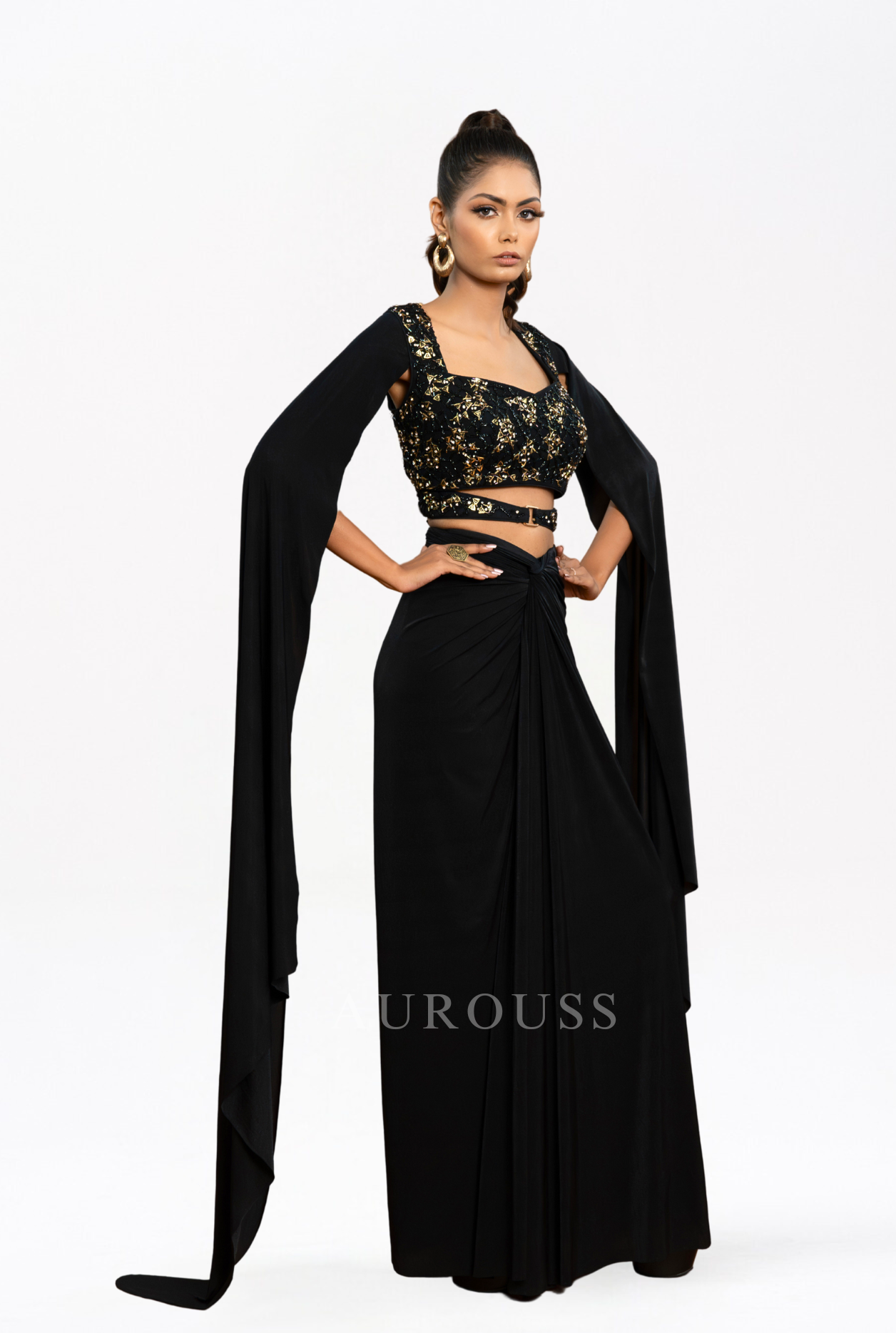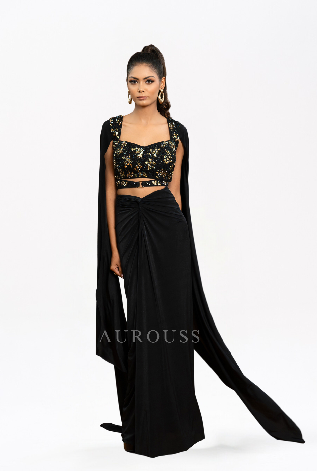 Moonlit Blush | Cashmere Rose Draped skirt with cape