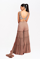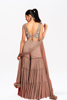 Grey embroidered blouse with 3 layer palazzo and dupatta